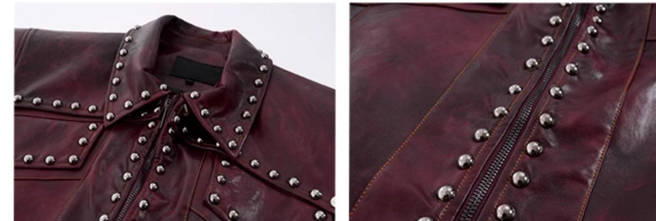Special-interest Design Heavy Industry Rivets Leather Vest Coat
